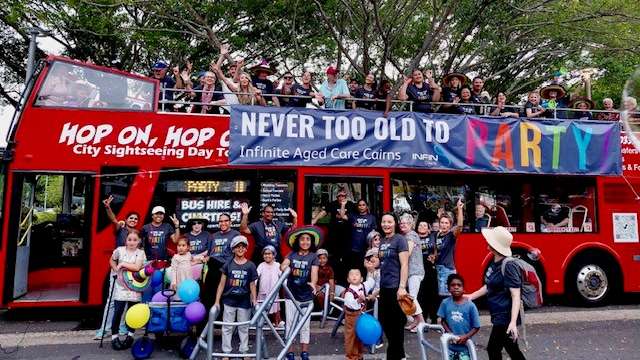 General Manager Fiona Lawson wanted to find a bold and creative way to showcase the vibrant spirit of her home. Her idea – transform the Cairns Party Bus into a colourful Infinite Care float, branded with the slogan “Never Too Old to Party” in line with this year’s festival theme, “Young at Heart.”